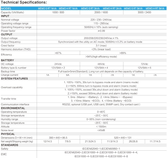 PowerUps MEMOPOWER PLUS RT Rack-mount and Tower Series