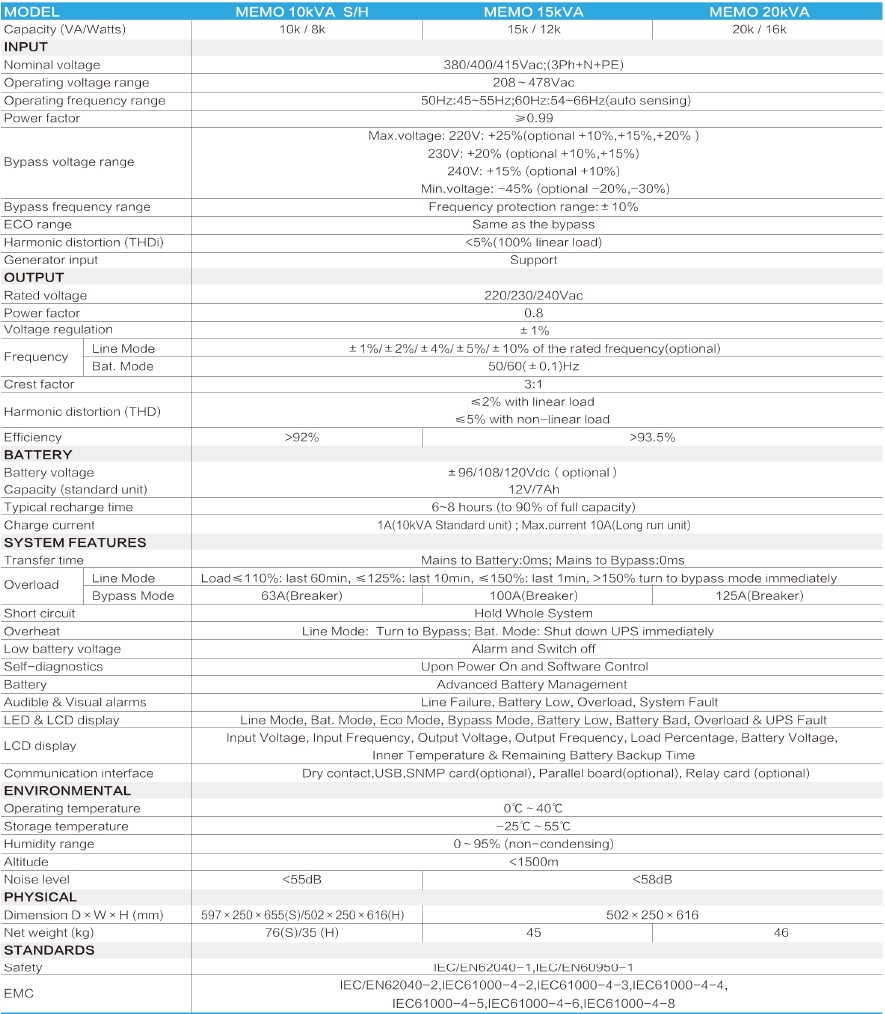 * Input current harmonic: <5% * optimization battery group the quantity of battery 16 />18/20 pieces (optional)